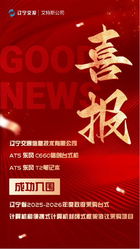 近日,艾特斯公司下属信息公司自主品牌信创产品“ATS 东风C660台式机”成功入围“辽宁省2025—2026年度政府采购台式计算机和一体式计算机封闭式框架协议采购项目”“ATS 东风T2笔记本”成功入围“辽宁省便携式计算机品目框架协议采购”。
